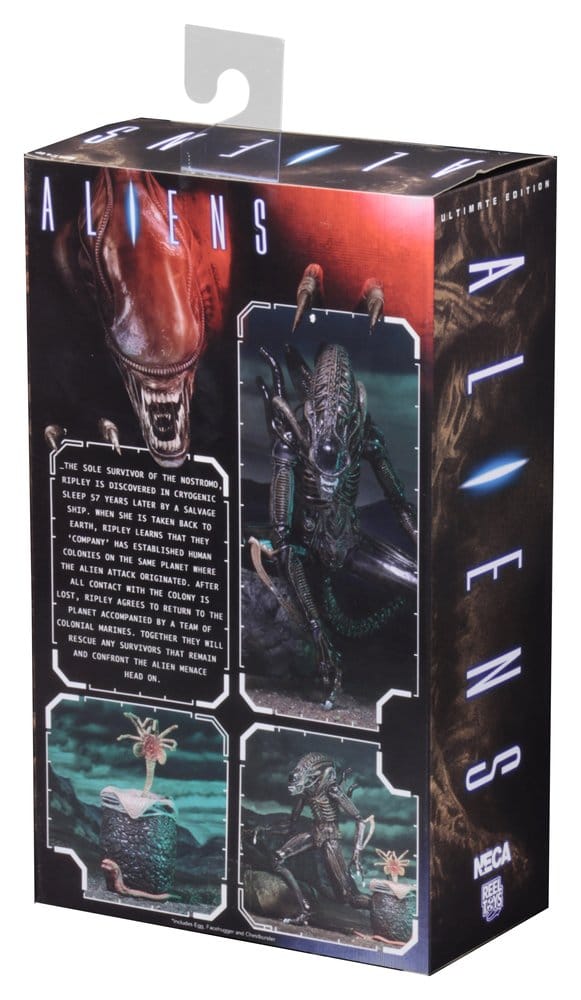 From the thrilling 1986 Aliens movie, the Warrior Alien gets NECA’s “Ultimate” action figure treatment! This Brown Alien Warrior has over 30 points of articulation and comes with facehugger, chestburster, and egg accessories. The Warrior stands over 9 inches tall and has a bendable tail. Comes in collector-friendly deluxe window box packaging with opening flap.