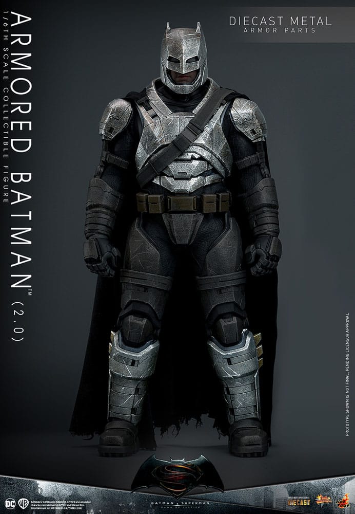 Drawing inspiration from the movie Batman v Superman, Sideshow and Hot Toys presents the Armored Batman (2.0) Sixth Scale Collectible Figure. This figure features diecast armors, which lend it a sturdy and realistic feel. And to further enhance the authenticity, weathering effects have been meticulously applied to give the figure a battle-worn appearance, capturing the grit and intensity of Batman’s confrontations in the film.