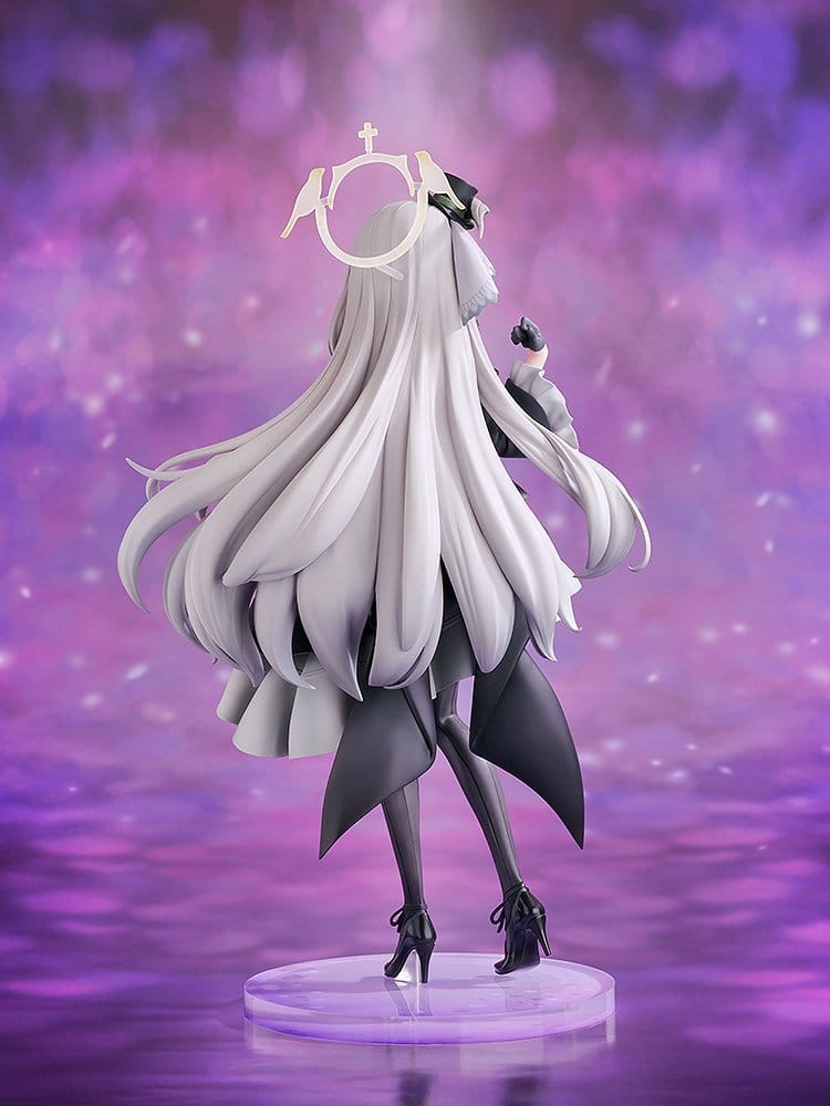 From the popular game “Blue Archive” comes a scale figure of Sakurako, a member of Trinity General School’s Sisterhood, in her pop idol outfit! The figure features the member of the idol group “Antique Seraphim”, performing on stage in a special outfit. Her chic monochrome outfit has been carefully recreated with attention to the soft texture of fabric, including the skirt’s gracefully flowing drapes. Decorations such as the frills and mini hat have also been meticulously sculpted down to the smallest details. Her gentle, intelligent charm is expressed through her bright smile, while her softly flowing long hair adds an extra touch of elegance. Be sure to enjoy this special moment with Sakurako as she shines on stage.