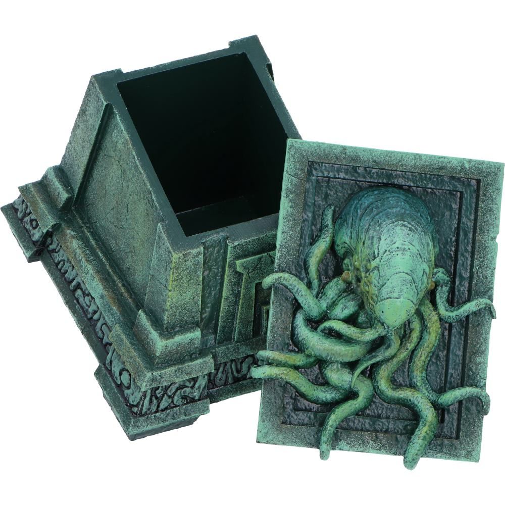 A Cthulhu Kriptája Doboz egy aprólékosan kidolgozott apró ajándéktárgy, amelyet a Nemesis Now tervezett, és a neves gótikus és fantasy művész, James Ryman kísérteties alkotásai ihlették. Ez a darab a művészet és a funkció tökéletes keveréke, megtestesítve Cthulhu mitológiájának sötét varázsát. Bonyolult dizájnja Ryman összetéveszthetetlen stílusát tükrözi, így nemcsak praktikus tárolási megoldás, hanem egy feltűnő műalkotás is, amely bármely gyűjteményt gazdagít.