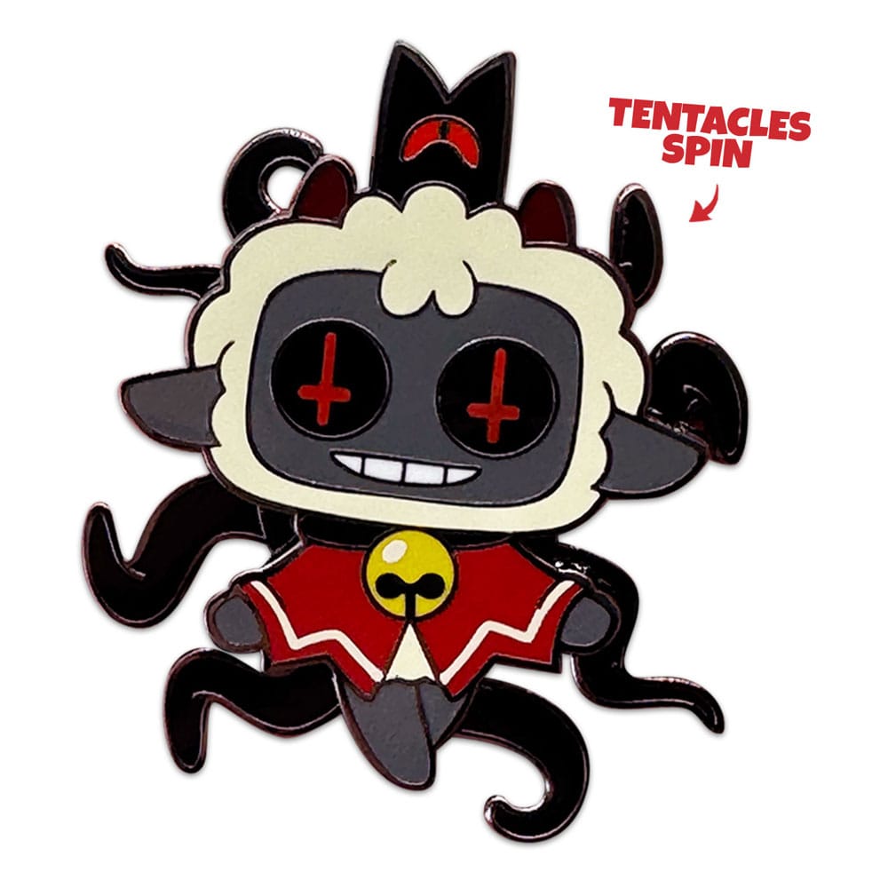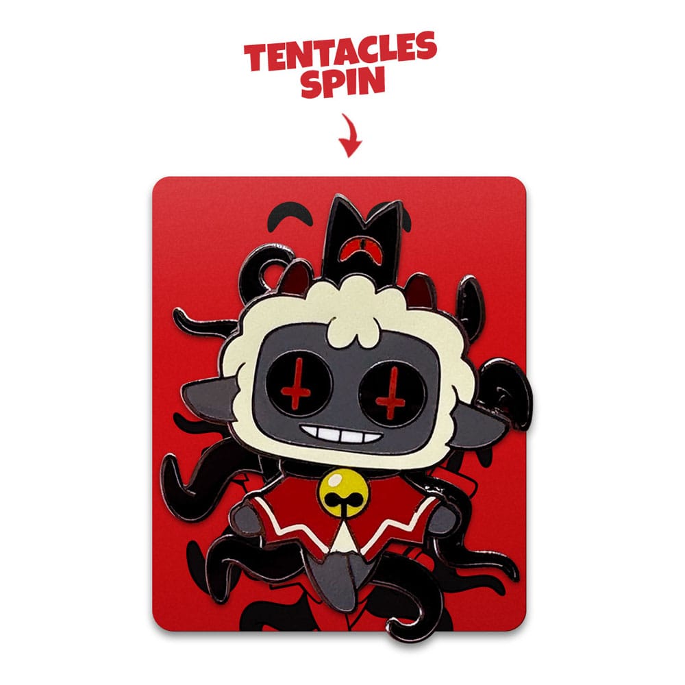 The Lamb is here to seduce you to a world of sin with their new pin! At 2 inches tall with a shiny, high-quality finish, this pin sees the Lamb levitating with their hands reaching out welcomingly, as a sinister grin stretches underneath black eyes that have inverted red crosses, while the black tendrils attached to their back spin around hypnotically. Perfect as decoration on a cork board or showing off on your tote bag, backpack, fanny pack, jacket or wherever your heart desires, this pin is sure to turn heads and catch the eyes of anyone you pass, letting them know who’s ready to succumb!