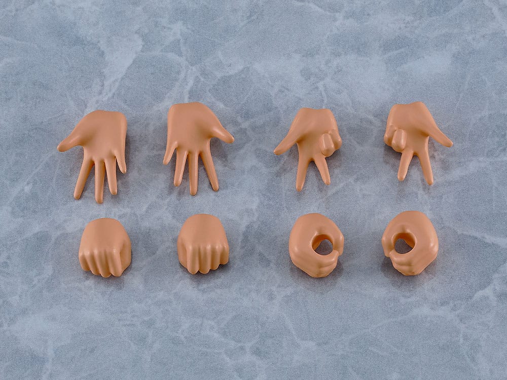 – The model comes with four types of hand parts: closed hands, open hands, peace sign hands and gripping hands. The holes for the gripping hands measure 3mm in diameter, allowing the model to hold items that are compatible with the hole size.