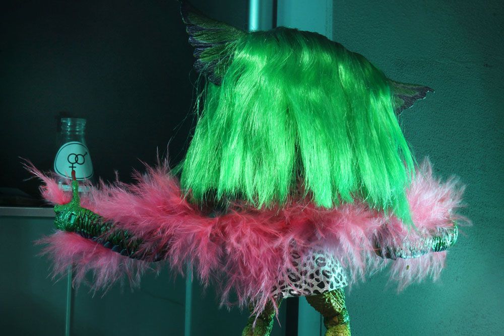 From Gremlins 2: The New Batch, Greta Gremlin stands approximately 6 inches tall, features synthetic hair, and comes with interchangeable hands, a pink boa, and the hormone potion that transformed her into the only female gremlin. Comes in window box packaging with opening flap.