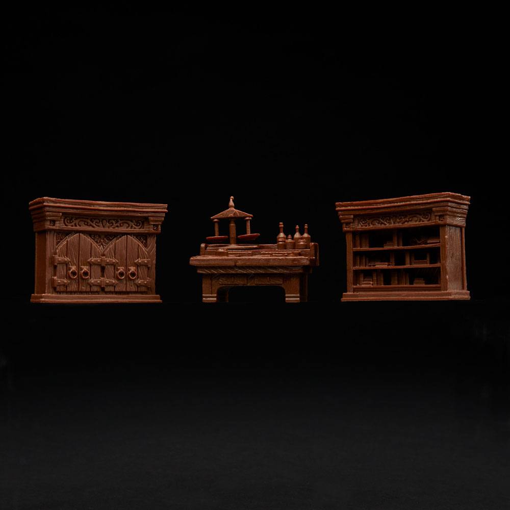 Includes gameboard, 31 monster miniatures, 4 hero miniatures, 15 furniture pieces, 10 skull pieces, 4 plastic rat pieces, 21 dungeon doors, 93 game cards, 4 turn-order cards, cardboard tiles, Quest Book, 4 character cards, Game Master’s screen, pad of character sheets, 6 white combat dice, 2 red dice, and rulebook.