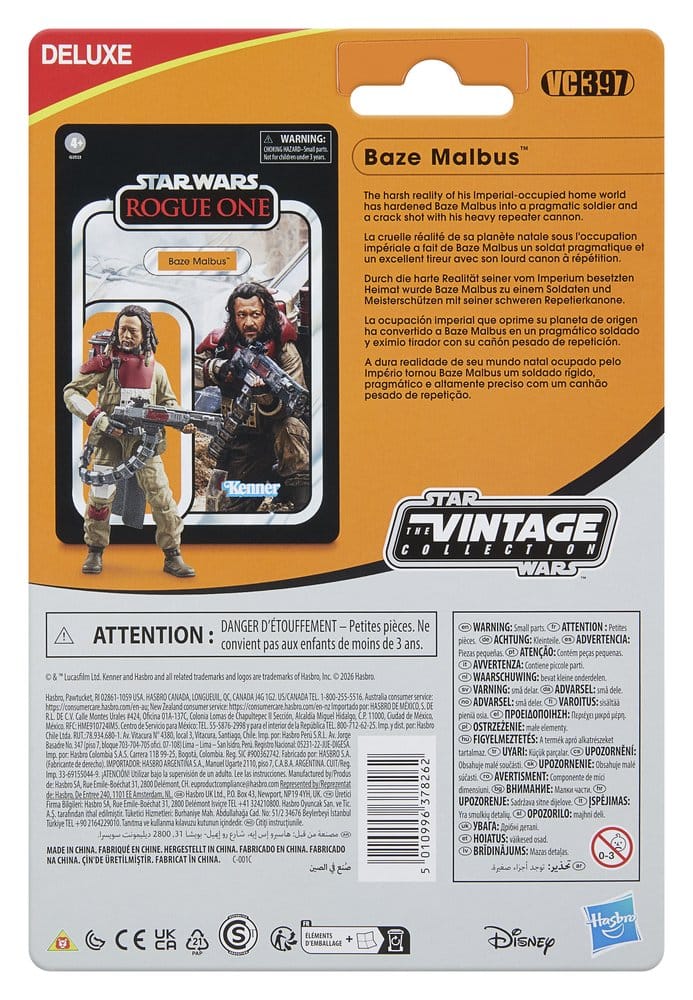 Celebrate the legacy of Star Wars with premium vehicles, playsets, and action figures from Star Wars The Vintage Collection. (Additional products each sold separately. Subject to availability.) Based on Baze Malbus from Rogue One: A Star Wars Story, this 9,5 cm-scale figure makes a great addition to any fan’s collection. Inspired by the original line, these collectibles feature premium detail and design across product and packaging, and collector-grade deco that fans have come to know and love. May the Force be with you!