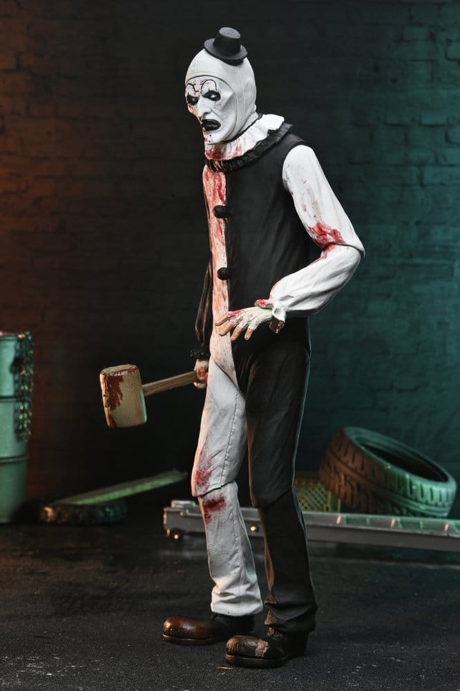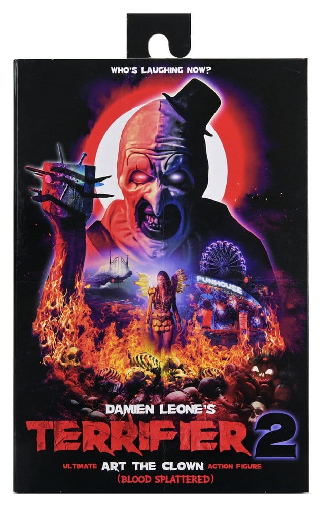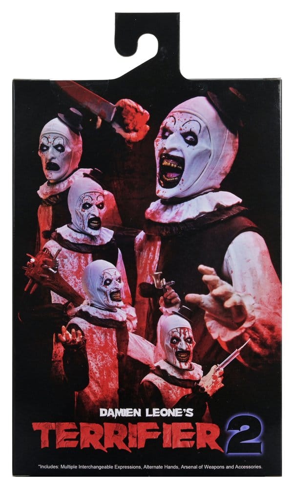 From Damien Leone’s Terrifier 2, NECA brings you this Ultimate Art the Clown action figure—a terrifying tribute to a modern horror icon. Standing in 7-inch scale, this fully articulated killer clown features blood-splattered deco, dripping in his victims’ blood from his little hat to his clown shoes. This figure includes multiple interchangeable faceplates and hands, and a slew of bloody weapons to add to the collection. The sadistic slasher comes in collector-friendly window box packaging with opening front flap, featuring artwork by www.creepyduckdesign.com. Bring home this silent, deadly menace to stalk your shelves! Size: 17.8 cm (7.00″)